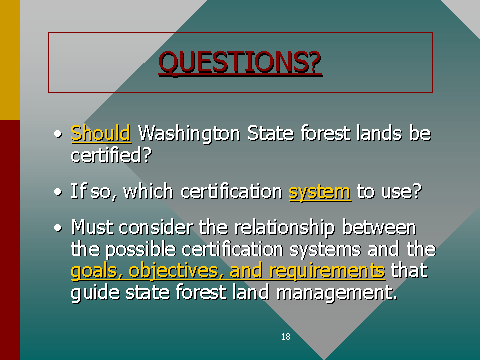 The main questions before us today include the following. The third of these points is critical -- Washington State federal grant lands are trust lands that must be managed with undivided loyalty to the benefit of the named trust beneficiaries. These public lands can not be used for the benefit of the citizens of Washington State, no matter how laudatory the uses may be, without just compensation to the trusts unless the uses are in the best interest of each named trust.