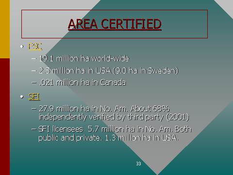 Areas of forest land that are certified under one of the schemes discussed herein. All figures current as of time of writing.