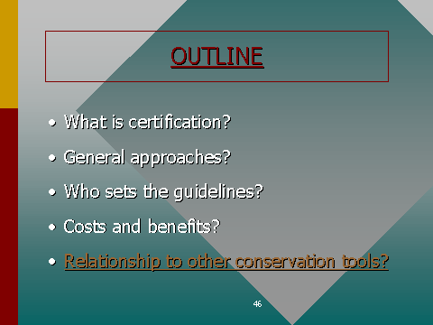 The final point to be discussed relates to the relationship between forest certification and other programs aimed at increasing forest sustainability, environmental performance and land stewardship.