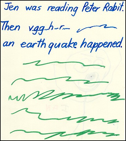 Ian told the story and wrote most of the words. His mom helped with some of the spelling. Oops! the "2" in the date is backward! |