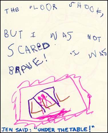 | On Ash Wednesday, February 28, 2001, an earthquake measuring 6.8 struck the Seattle area. Ian was not quite 4 years old. He was in daycare when the earthquake struck. This is his view, in his own words, as told to his mom over the following few days. |