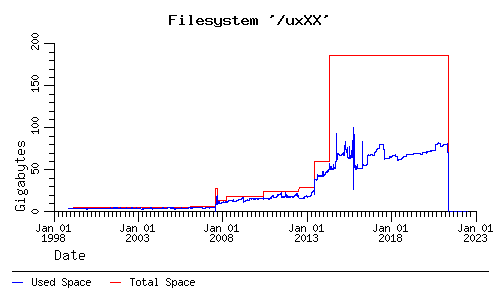 The following filesystems fall under the category of system overhead. Home directories for system staff are on the /ux filesystems. The groundhog cluster home directories are on the /ghd filesystems.