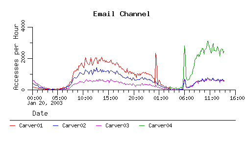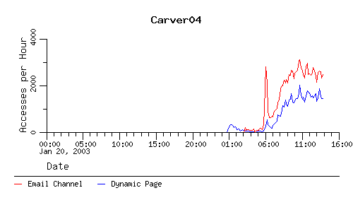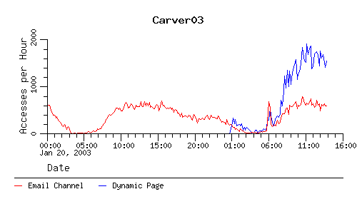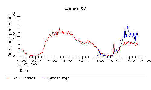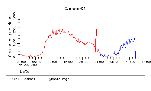 The following charts show the number of accesses to the email channel and the number of accesses to the dynamic page that the email channel points to when we're in the paranoid mode.
