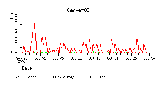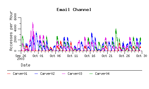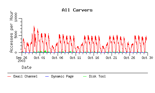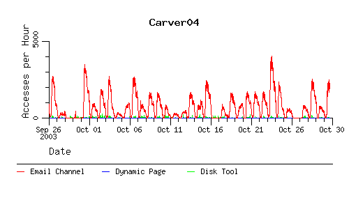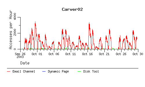 The following charts show the number of accesses to the email channel and the number of accesses to the dynamic page that the email channel points to when we're in the paranoid mode. As an added bonus the number of accesses to the disk tool are there too.