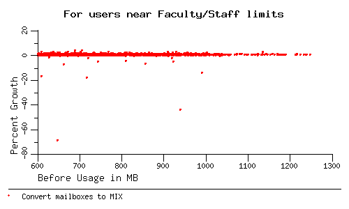 Here's a graph of the before and after disk usage on deskmail systems when converting from UNIX or MBX format mailboxes to the new MIX format.