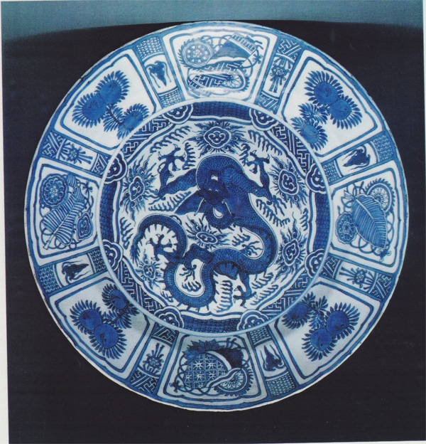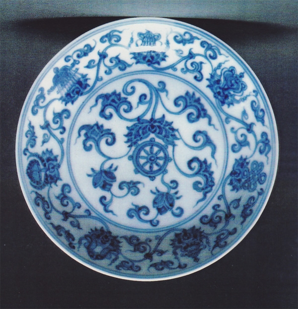 II. To approach a rather different question, look at the thrree porcelain plates below. The Yuan dynasty was the origin of the blue and white porcelain we so frequently assoicate with China. How do these plates differ? |