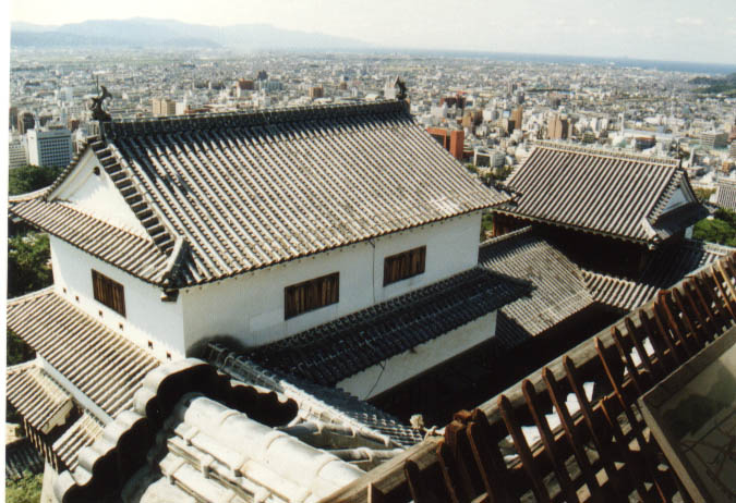 I visited a couple of very scenic sites which are well-known in Japan. The city of Matsuyama in NW Shikoku is famous for a traditional onsen (hot-spring bath) which was featured in a novel, and for a well-preserved hill-top castle of considerable beauty, and was my goal for the first day on my Japan Rail pass. After getting lost and blundering around a modern park and/or cemetery for an hour (my recollection of the exact details is vague), I found my way to the youth hostel, which is convenient to the onsen. Both highly recommended!
