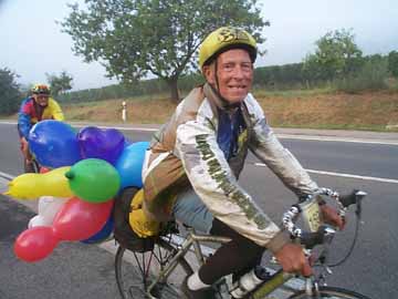 By the time I'm ready to go, I see Elbert is just leaving.  He has a huge bunch of balloons tied to his bike and is