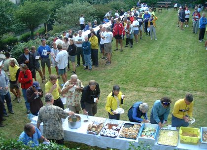 Here I am in a food line in Barmouth, Wales. This is an enlarged image (left) of a picture (right) posted under the